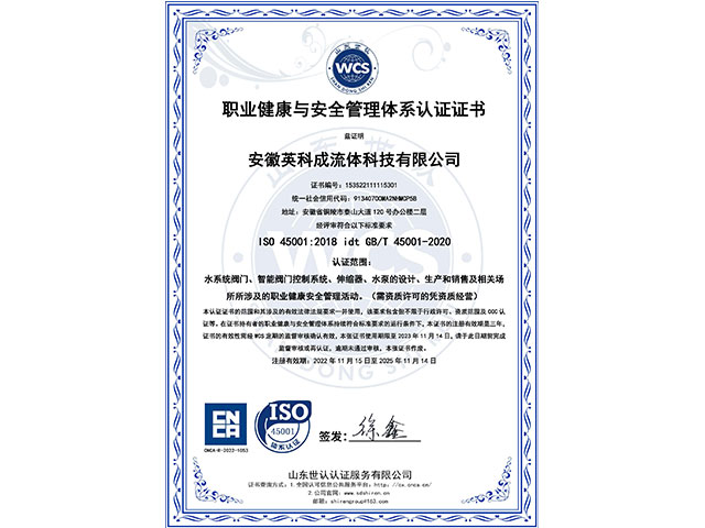 安徽英科成流體科技有限公司位于黃山腳下長江之濱的中國古銅都-安徽省銅陵市。公司注冊資金1.1億,是國內一家專業致力于給排水行業系統解決方案、閥門以及智能閥門技術研發(fā)與生產銷售服務為一體的企業。 我們擁有完善的質量控制體系和檢測設備,公司主要的產品有閘閥、蝶閥、偏心半球閥、液控蝶式止回閥、靜音止回閥、橡膠瓣止回閥、活塞式流量調節(jié)、錐型閥、節(jié)能型泵控閥、倒流防止器、減壓閥、排氣閥、排泥閥、伸縮器、閘門、啟閉機等二十多個系列,可以充分滿足客戶的一站式需求。……